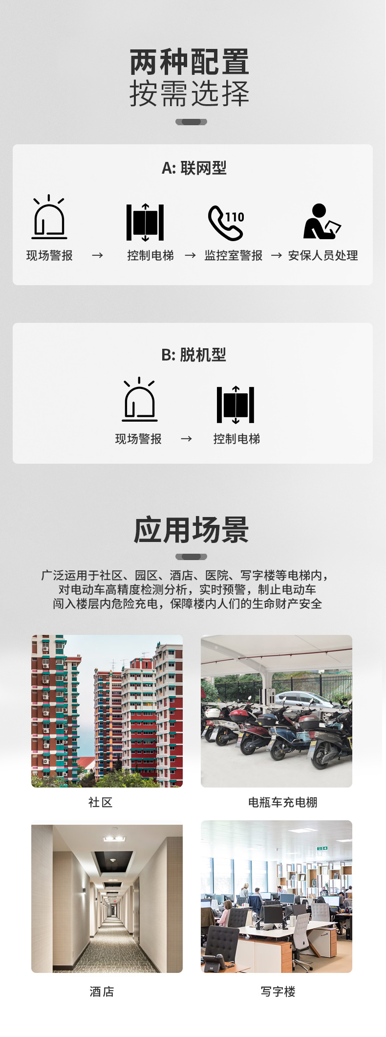 電動(dòng)車識(shí)別預(yù)警攝像機(jī):電動(dòng)車識(shí)別預(yù)警攝像機(jī)設(shè)備嵌入電動(dòng)車識(shí)別算法,實(shí)現(xiàn)對(duì)電動(dòng)車檢測(cè)分析識(shí)別,實(shí)時(shí)預(yù)警周界區(qū)域內(nèi)電動(dòng)車闖入事件,前端攝像機(jī)一體化完成分析、識(shí)別、預(yù)警,并上傳平臺(tái)。