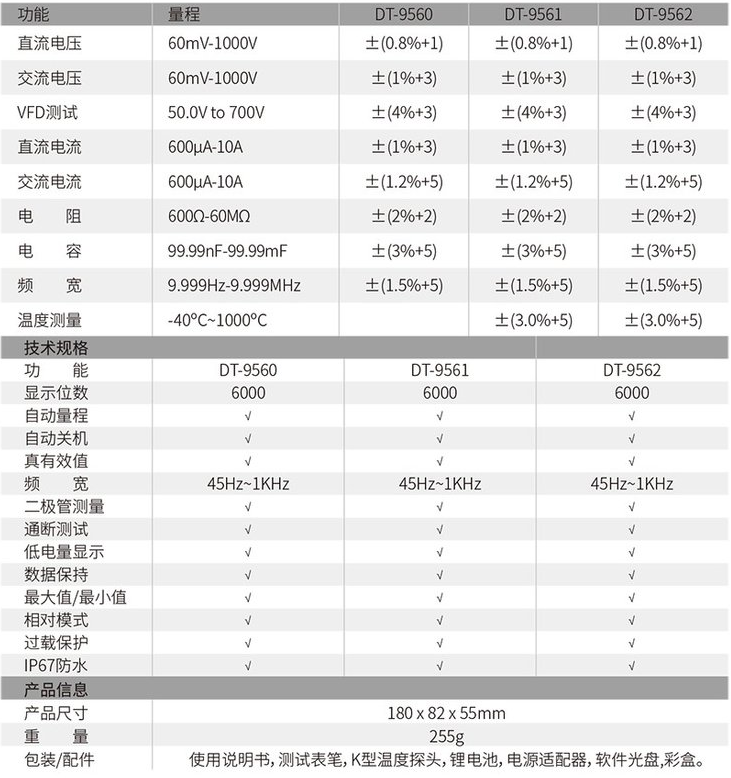 華盛昌DT-9560工業(yè)級(jí)數(shù)字萬(wàn)用表產(chǎn)品產(chǎn)品特點(diǎn):