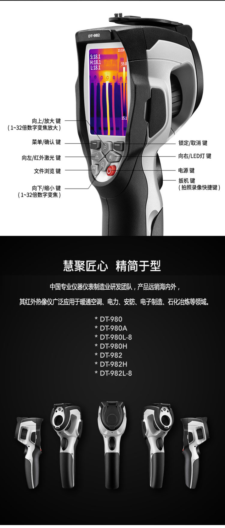 標(biāo)配鏡頭19mm,分辨率160×120,IFOV:1.31mard,視場角12×9°,熱靈敏度NETD<0.06℃,圖像幀頻50Hz,溫度范圍(-20-150、0-350),可見光分辨率500萬像素