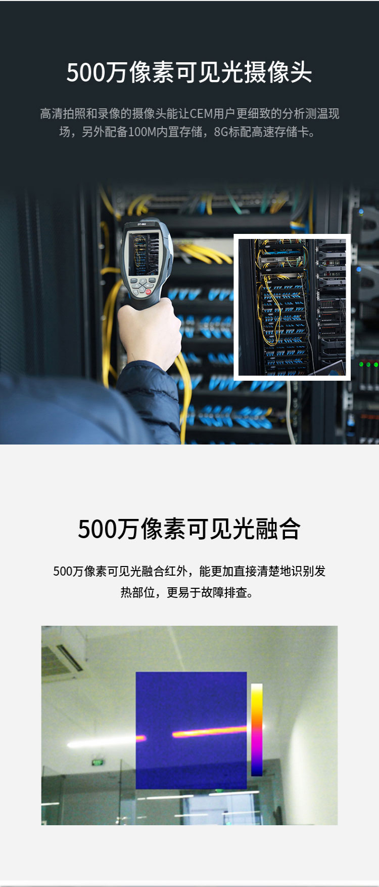 產(chǎn)品特性 1、更小的空間分辨率IFOV ;2、50Hz圖像幀頻; 3、精確測(cè)溫和高清紅外成像﹔4、32倍連續(xù)數(shù)字變焦; 5、強(qiáng)大的區(qū)間鎖定﹔6、高低溫自動(dòng)追蹤; 7、500萬(wàn)像素可見(jiàn)光攝像頭;8、500萬(wàn)像素可見(jiàn)光融合;9、免費(fèi)而強(qiáng)大的專業(yè)分析軟件。 10.AUF紅外熱成像和可見(jiàn)光自動(dòng)融合功能11.靈巧緊湊的設(shè)計(jì),2米防摔